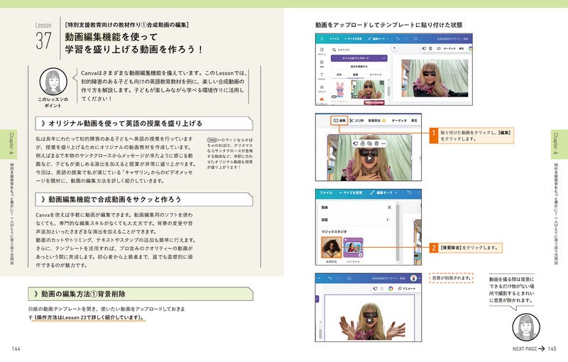 また、Chapter 4では特別支援学校での活用事例を紹介しています。アクセシビリティ機能やテンプレートを活用して、多くの子どもたちに配慮した教材を作成することができるようになります。