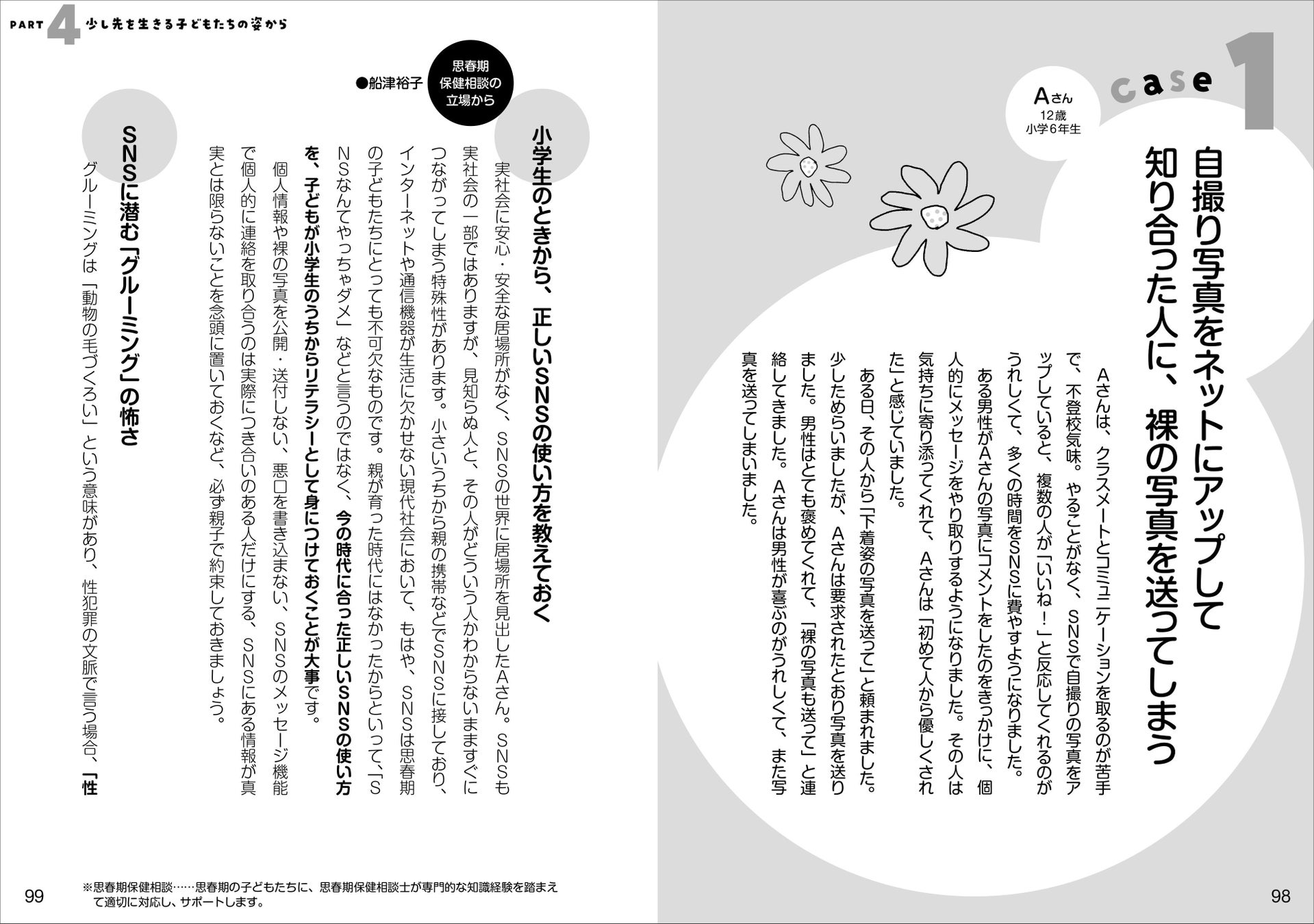 思春期を生きる子どもたち(小学校高学年〜高校生)の「自撮り写真をネットにアップして知り合った人に、裸の写真を送ってしまう」「自分の性に対して違和感があり、部屋に引きこもるように」といった、性にまつわる悩みやトラブルを取り上げます。