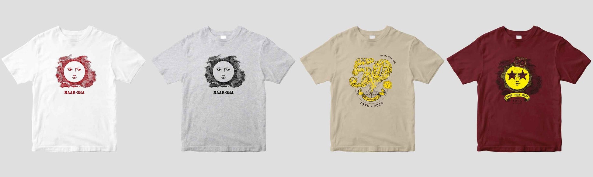 マール社の50周年を記念して、オリジナルアイテムを販売開始いたしました。マール社のトレードマーク「マールちゃん」をあしらったデザインとなっています。また2025年2月7日〜2026年1月31日の期間限定で、小爆発する火山マールちゃんと、星のサングラスとビーズの王冠でめかし込んだ、ちょっとファンキーなマールちゃんTシャツもご用意しています。カラバリも豊富に揃えているので、お気に入りの1枚を探してみてください!