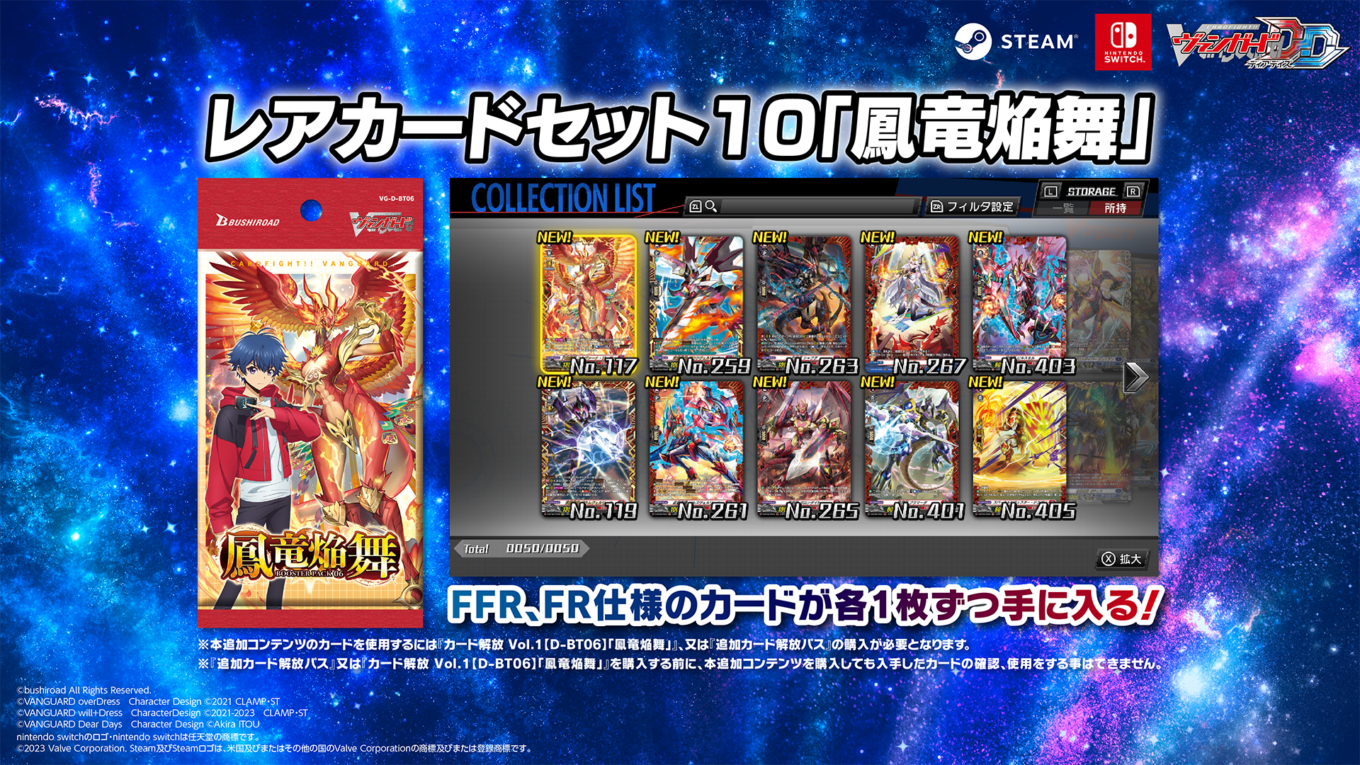 ※本追加コンテンツのカードを使用するには「追加カード解放パス」又は『カード解放 Vol.1【D-BT06】「鳳竜焔舞」』を購入して、カードの入手を可能にしている必要があります。