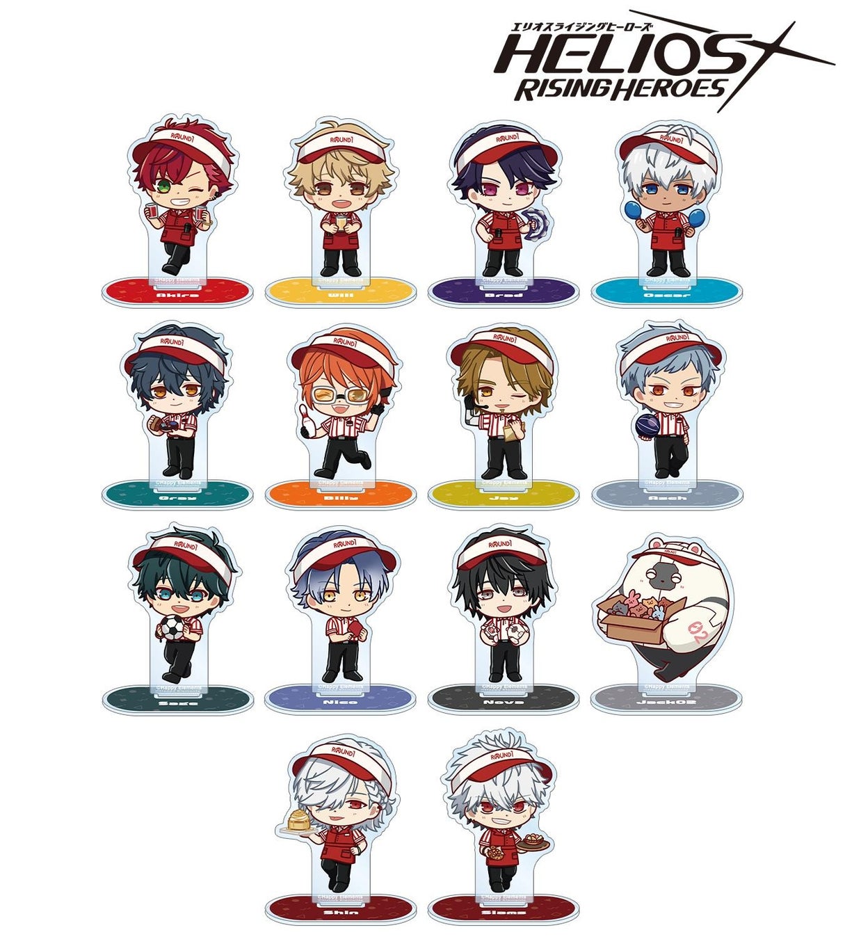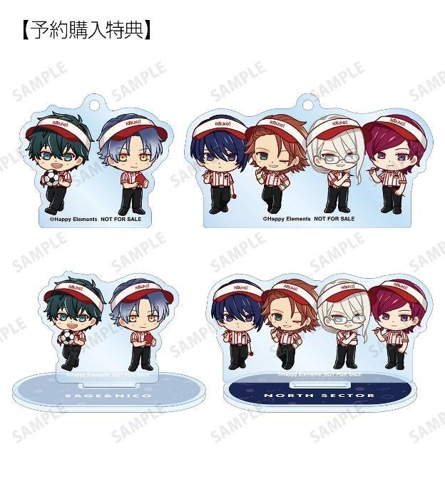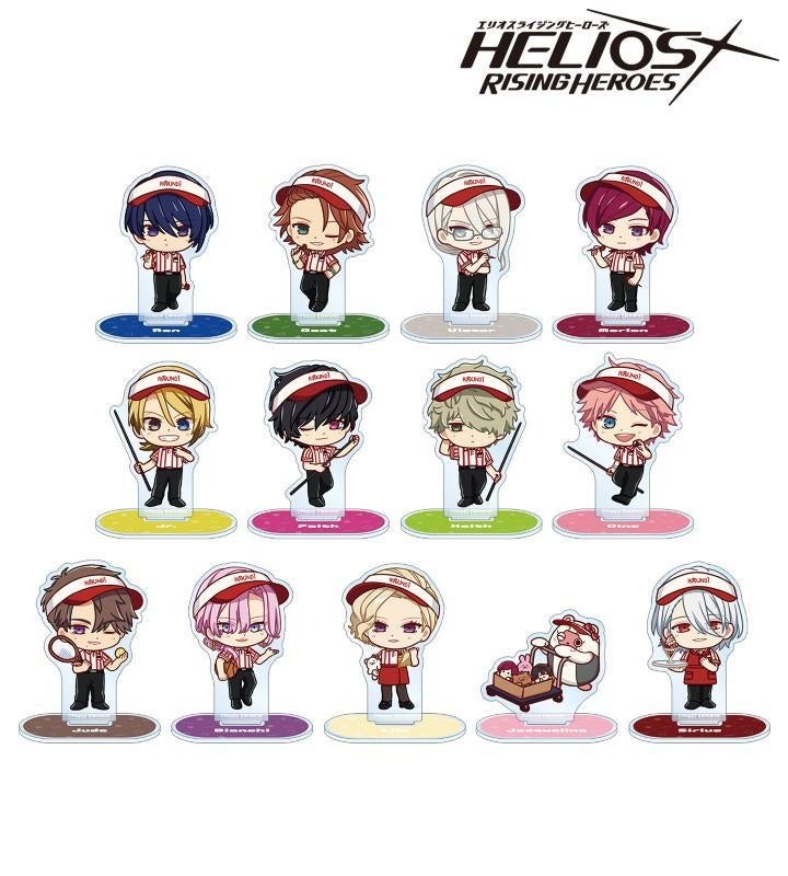 鳳アキラ、ウィル・スプラウト、ブラッド・ビームス、オスカー・ベイル、グレイ・リヴァース、ビリー・ワイズ、ジェイ・キッドマン、アッシュ・オルブライト、セイジ・スカイフォール、ニコ、ノヴァ・サマーフィールド、シン、シャムスのイラストをミニアクリルスタンドに仕上げました。