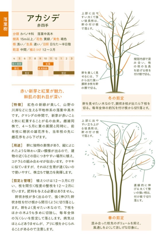 木の特徴を捉えたイラストで、どこをどう切ればよいかがよくわかる