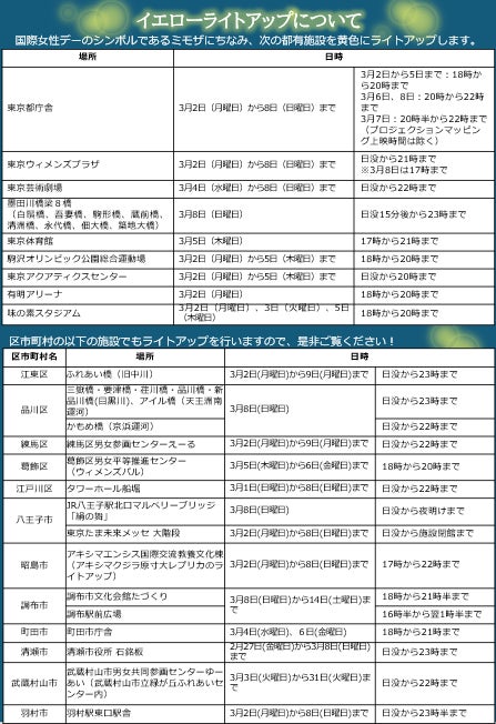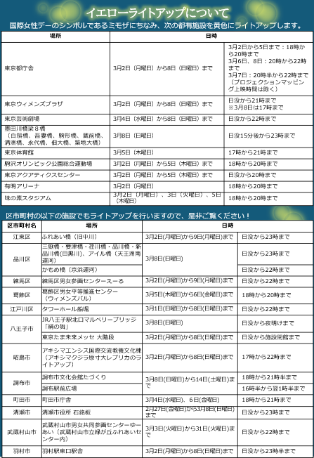 ※区市町村施設のライトアップについては、各区市町村にお問い合わせください。