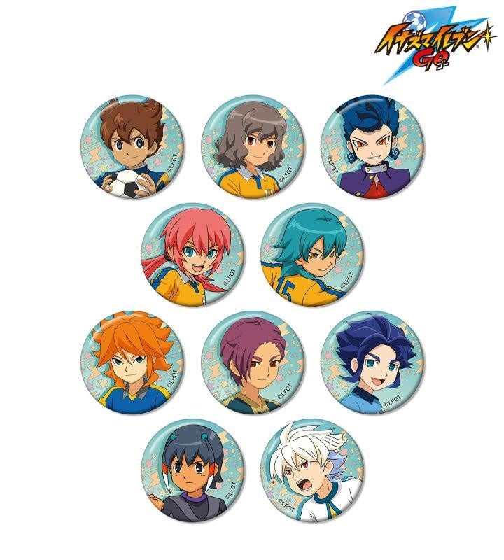 松風 天馬、神童 拓人、剣城 京介、瞬木 隼人、真名部 陣一郎、皆帆 和人、鉄角 真、九坂 隆二、井吹 宗正、市川 座名九郎の印象的なシーンをグリッター加工を施した缶バッジに仕上げました。
