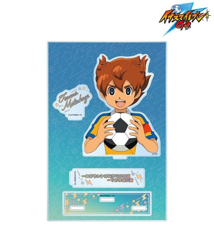松風 天馬、神童 拓人、剣城 京介、霧野 蘭丸、狩屋 マサキ、シュウ、白竜、フェイ・ルーン、SARU、瞬木 隼人、井吹 宗正のイラストと台詞、名前の英字をパーツ付きのBIGなアクリルスタンドに仕上げました。