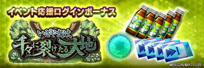 期間中のログインで、「空の因子」や「期限付きマッスルドリンコ」など豪華報酬がもれなくもらえます。どうぞお見逃しなく!