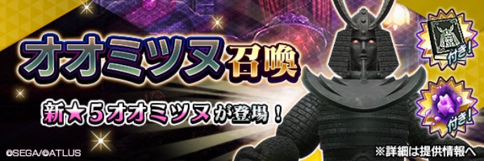 株式会社セガは、『真・女神転生』のスマートフォン向けタイトル、『D×2(ディーツー) 真・女神転生 リベレーション)』にて、2025年5月15日(木)より、新★5悪魔「地霊 オオミツヌ」が登場する期間限定の召喚を開催します。