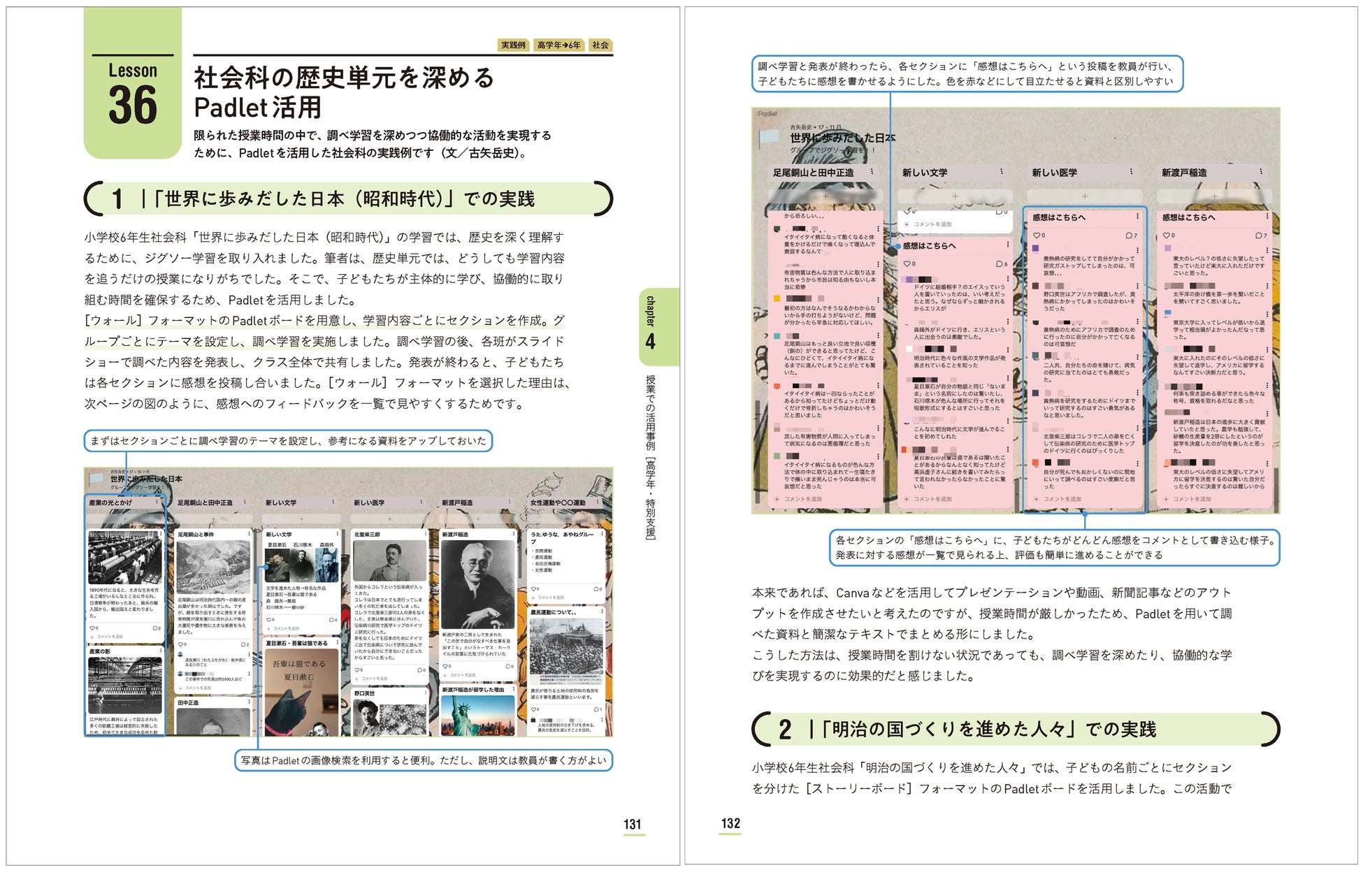 本書は、現役教員の実体験に基づく授業や校務でのPadlet活用事例を、豊富な図解とともにわかりやすく解説しています。具体的な操作手順から、低学年から高学年、特別支援教育まで幅広い授業での応用方法、さらに学校行事や校務での活用例まで、実践的な内容が満載です。Padletを教育現場で効果的に活用したいと考えるすべての教育者にとって、必携の一冊となっています。