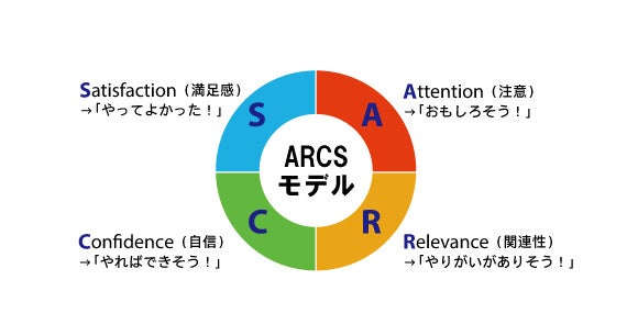 学習意欲を支援するモデルとして、フロリダ州立大学名誉教授のジョン・ケラーが提唱したARCS(アークス)動機づけモデルがあります。これはモチベーションを、