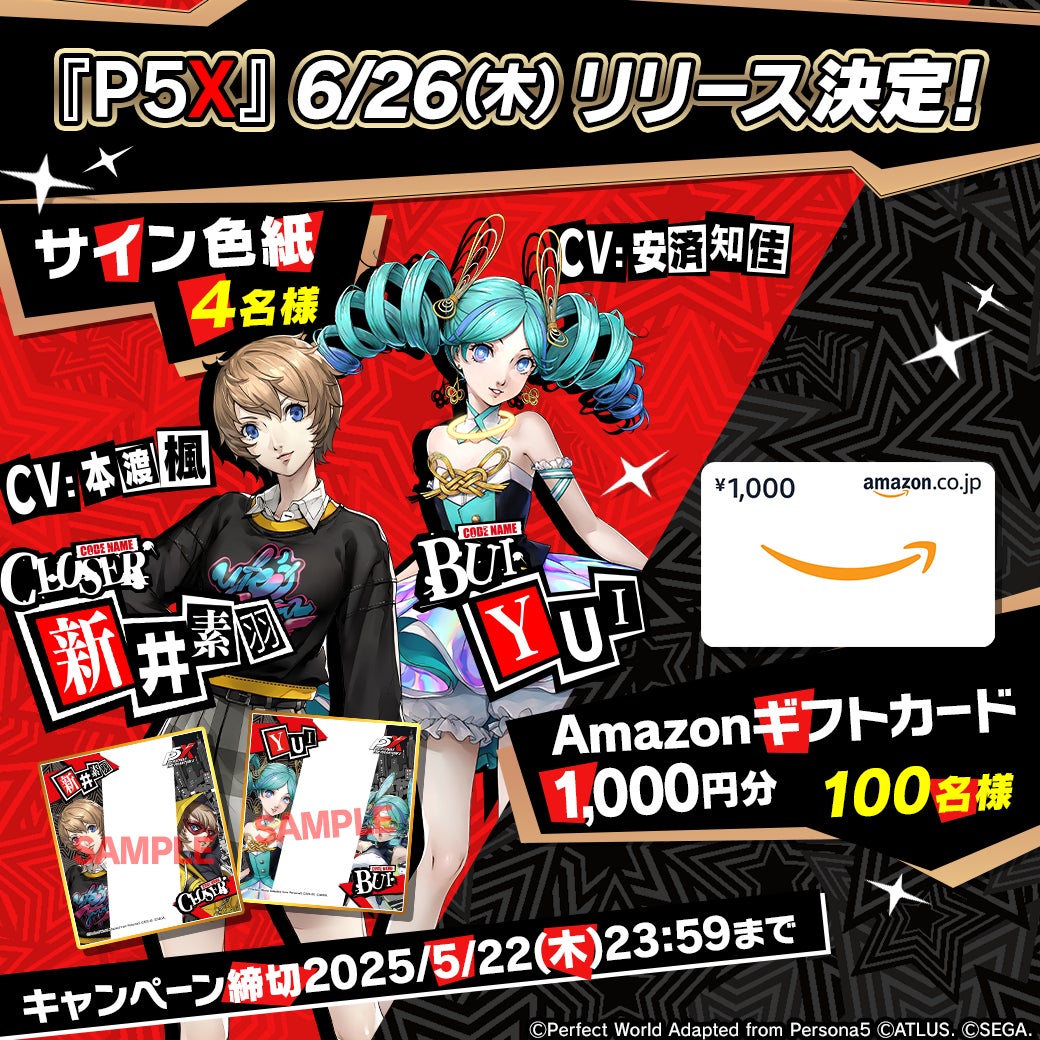 参加方法:『ペルソナ5: The Phantom X』公式X(https://x.com/P5X_Official_JP)をフォロー、キャンペーン対象のポスト(https://x.com/P5X_Official_JP/status/1923019286458794246)をリポスト。