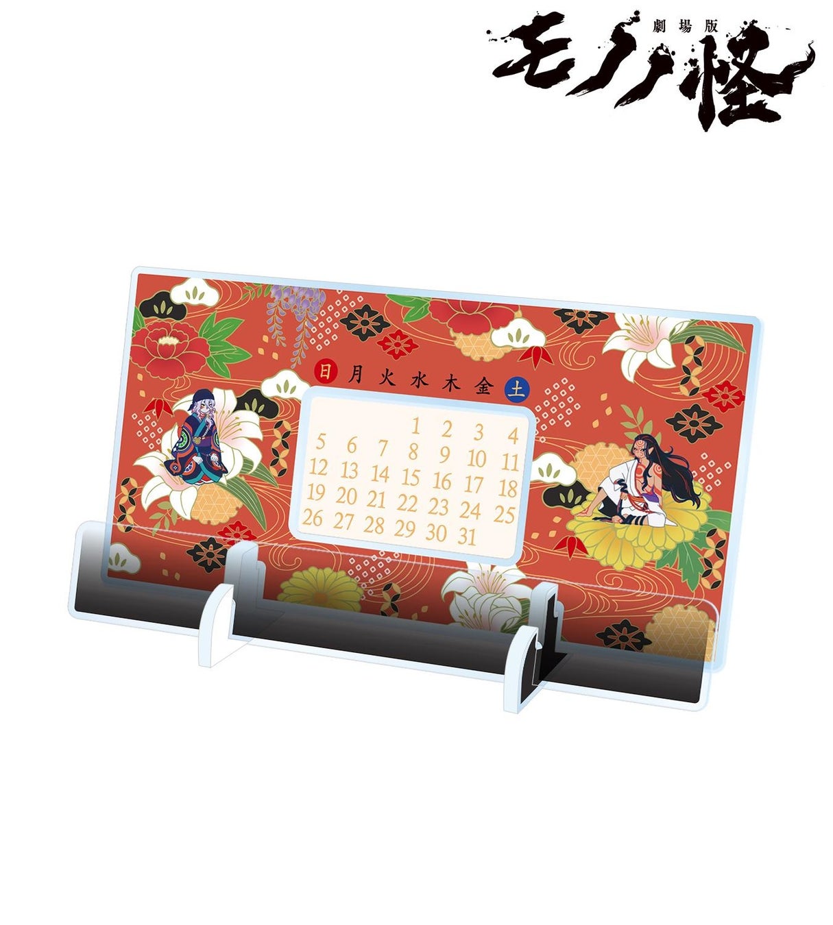 薬売り、神儀のイラストをボタニカルデザインに落とし込んで繊細なタッチで新たに描き起こし、卓上アクリル万年カレンダーに仕上げました。