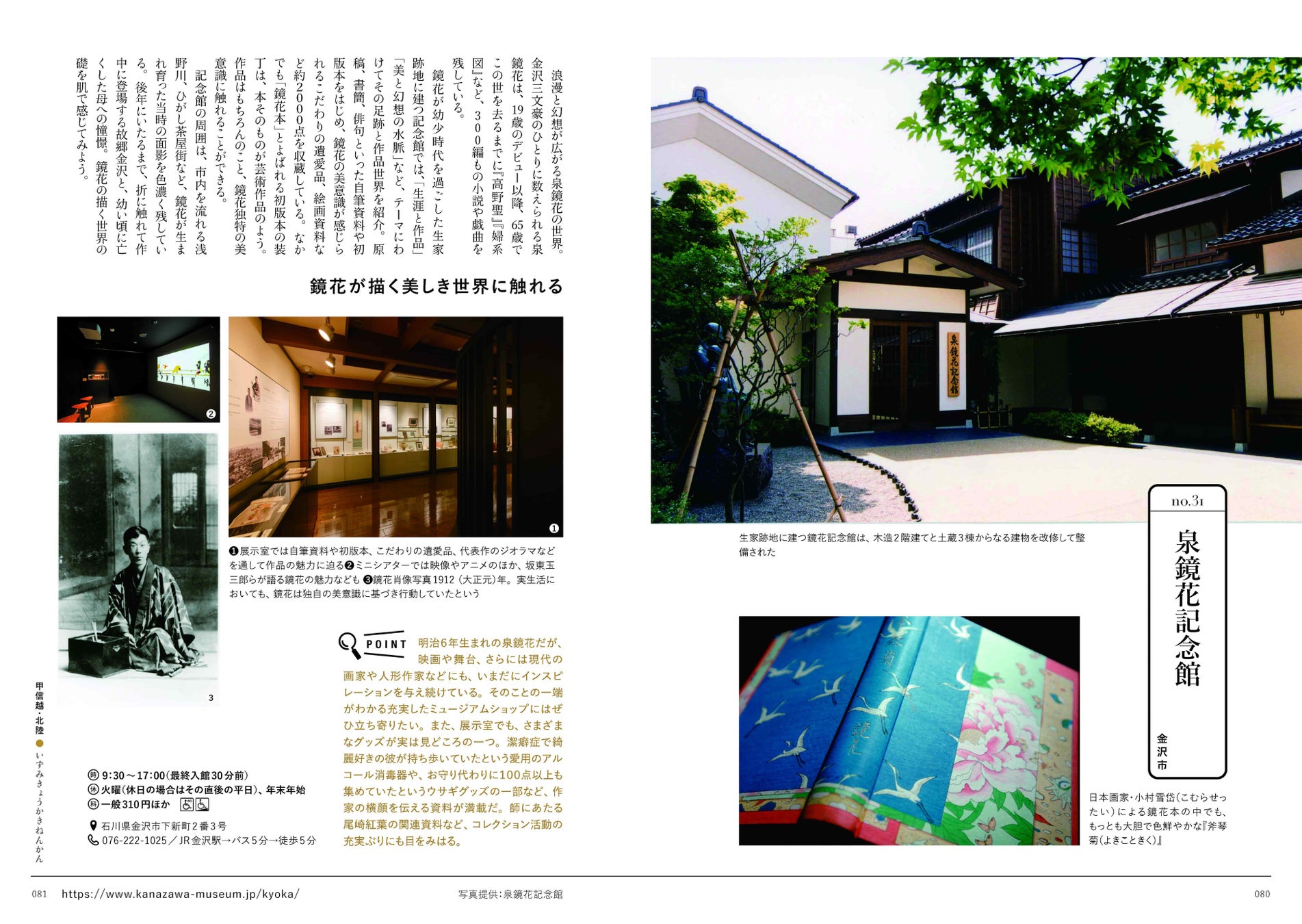〈甲信越・北陸エリア〉小川未明文学館/高志の国文学館/泉鏡花記念館/金沢文芸館/石川近代文学館/室生犀星記念館/鈴木大拙館/山梨県立文学館/小諸市立藤村記念館/堀辰雄文学記念館/椋鳩十記念館・記念図書館