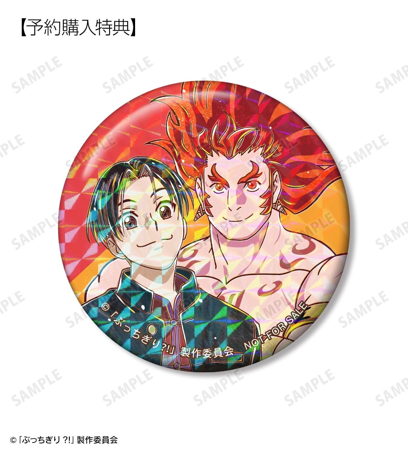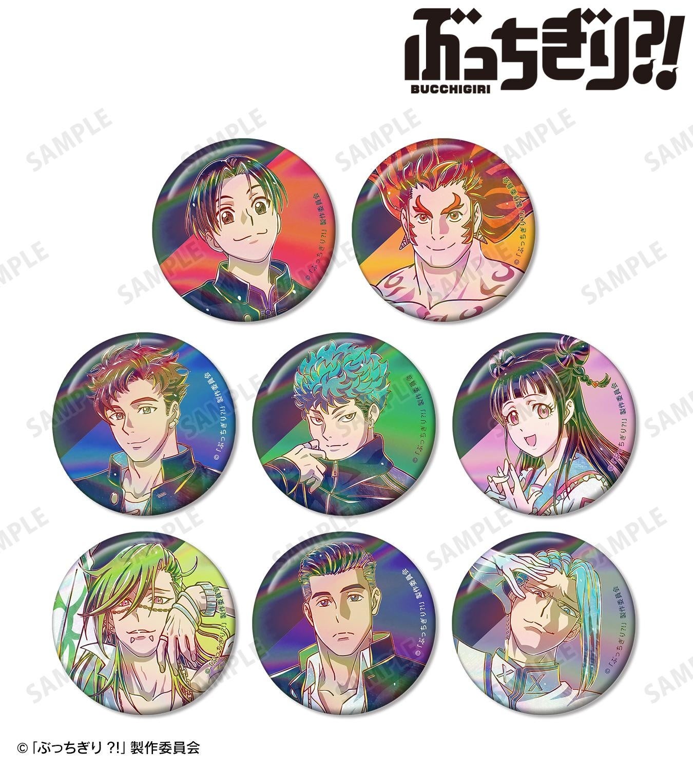 灯 荒仁、千夜、浅観音 真宝、座布 翔、神 まほろ、神 摩利人、大英 王太、心土 阿久太郎のイラストを新たなタッチで魅力的に表現し、オーロラ加工を施した缶バッジに仕上げました。