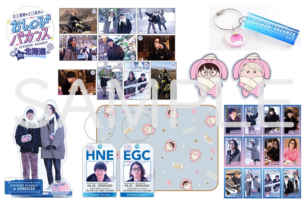 BD『花江夏樹・江口拓也のおしのびバカンス in 北海道』の発売を記念して、おしバカ北海道編グッズが発売決定! トレーディングクリアカード、ポストカードセット、アクリルスタンド、ラゲッジタグ風アクリルキーホルダーや本編中に登場するブランケットなどがアニメイト、ムービック公式通販でBDと同時発売。。ぜひBlu-rayとあわせてお楽しみください‼