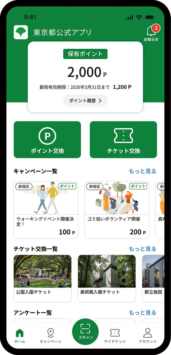 最新のイベント情報を確認して参加することで、買い物などに使える東京ポイントが貯まります。