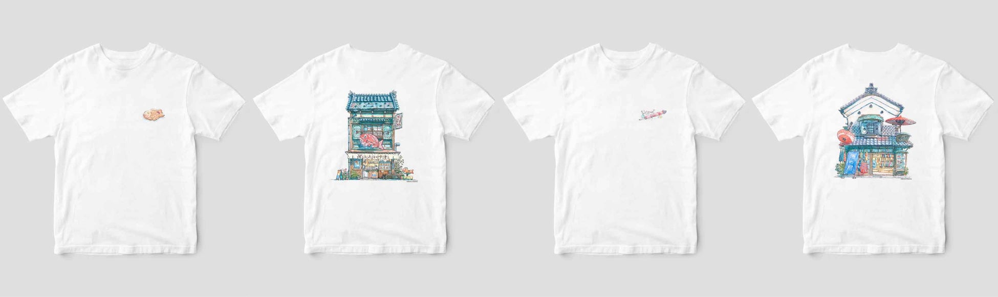 『空想店構え マテウシュ・ウルバノヴィチ作品集Ⅲ』に描かれた幻想的な風景が、Tシャツとトートバッグになりました。「もしもこんな店があったら…」 そんな想像をかきたてる美しい店構えをプリント。繊細なタッチと温かみのある色彩を感じられるデザインです。Tシャツ、トートバッグともに5種類ずつデザインをご用意しています。空想の街にふと迷い込んだような感覚を、ぜひこのアイテムで体験してください!