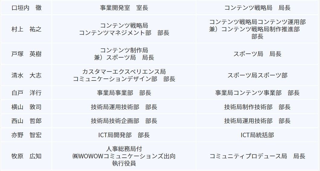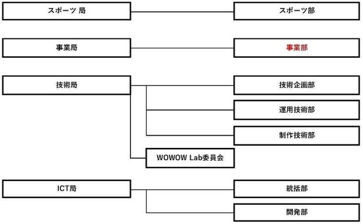 「営業部」は、会員獲得施策の企画と遂行、メディア・サービス拡大に向けた各種BtoB施策を担う。「コミュニケーションデザイン部」は、お客さまへの情報発信手段を統合管理する。「WODサービス部」は、WOD(WOWOWオンデマンド)利用者のCX向上とWODサービスの最大化の戦略立案と遂行を行う。
