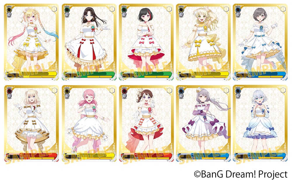 特典の「ブロマイド」と「ヴァイスシュヴァルツPRカード」はユニットのボーカルメンバー10人がミニドレスを身に着けた描き下ろしイラストを使用しており、「キラキラステッカー」にも描き下ろしイラストが含まれています。