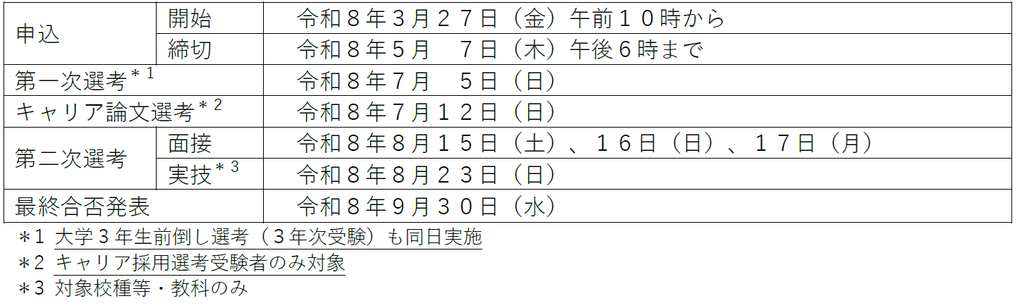 令和8年度東京都公立学校教員採用候補者選考(9年度採用)について
