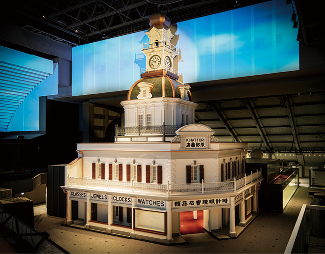 江戸から近代へ。<東京ゾーン>の入口に、東京・銀座のシンボルである「服部時計店」の原寸大模型が新たにお目見えしました。