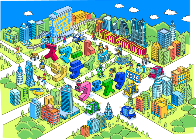 最新のデジタル技術を使って、将来の西新宿の街を表現したデジタルツインや、未来を感じるスマートサービスなどが体験できます。あわせて東京都が進めているスマートシティの取組もわかりやすく紹介します。