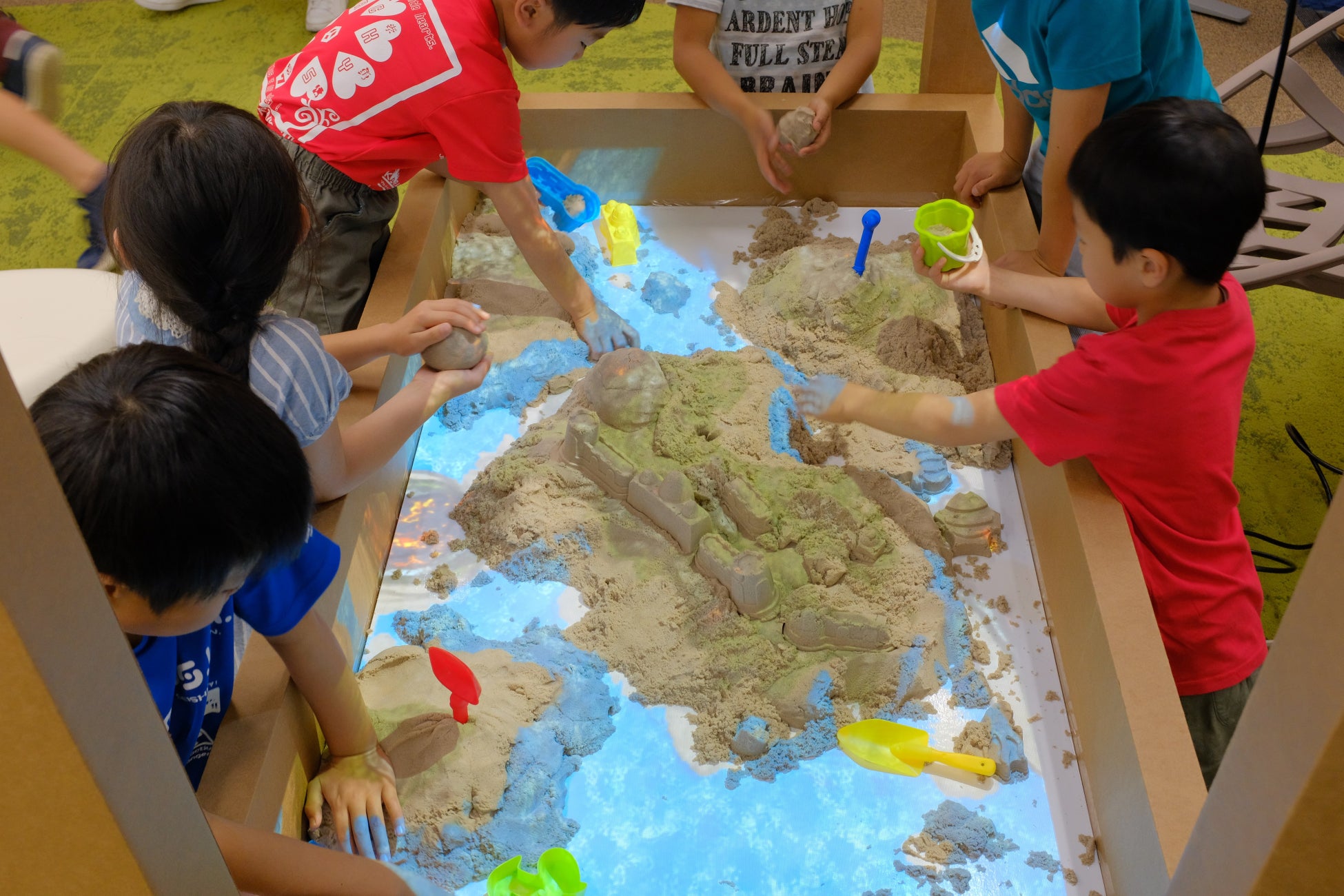 子供が実際に乗って操作できるロボットや、砂場に映像が映し出されて遊べるデジタル砂場、自分で描いた絵がレースするお絵かきパラダイスなど、子供も楽しめるコンテンツも盛りだくさん!