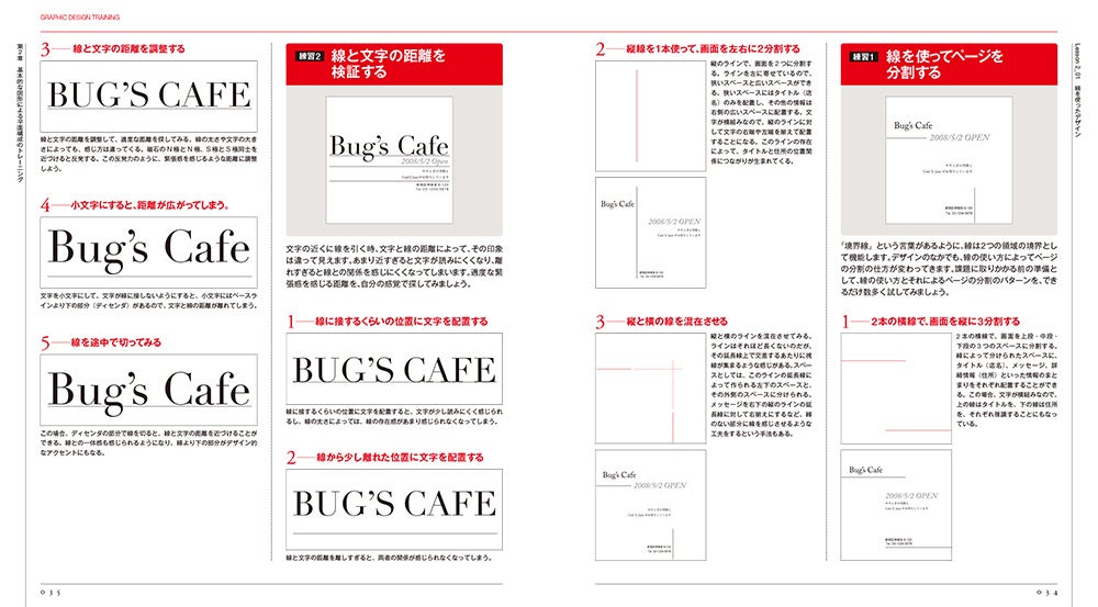 第2章以降の各レッスンでは課題を用意しています。線→四角形→円→書体→色というように、トレーニングするポイントを絞って学べるように設計されており、それぞれのレッスンに取り組むときに、「今、ここを鍛えている」と自覚しながら取り組んでいただけます。
