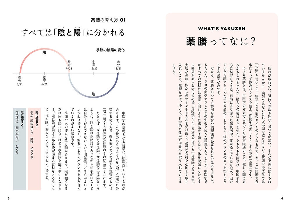 漢方の考え方に基づいた食材の効能や、体調管理に役立つアドバイスも掲載。