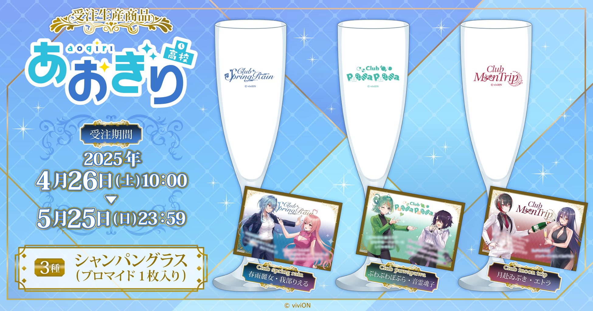 VTuberグループ『あおぎり高校』より、シャンパングラスが受注生産商品で登場!