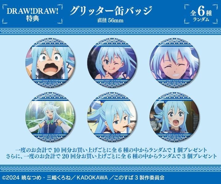 漫画・アニメのオリジナルグッズを販売する株式会社アルマビアンカ(本社:東京都中野区、代表取締役:坂井智成)は、自社オンラインくじサービス「DRAW!DRAW! -ドロー!ドロー!-」にて8月1日(木)よりTVアニメ「この素晴らしい世界に祝福を!3」オンラインくじを販売いたします!