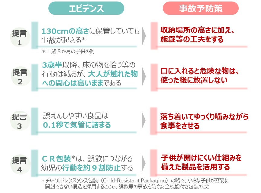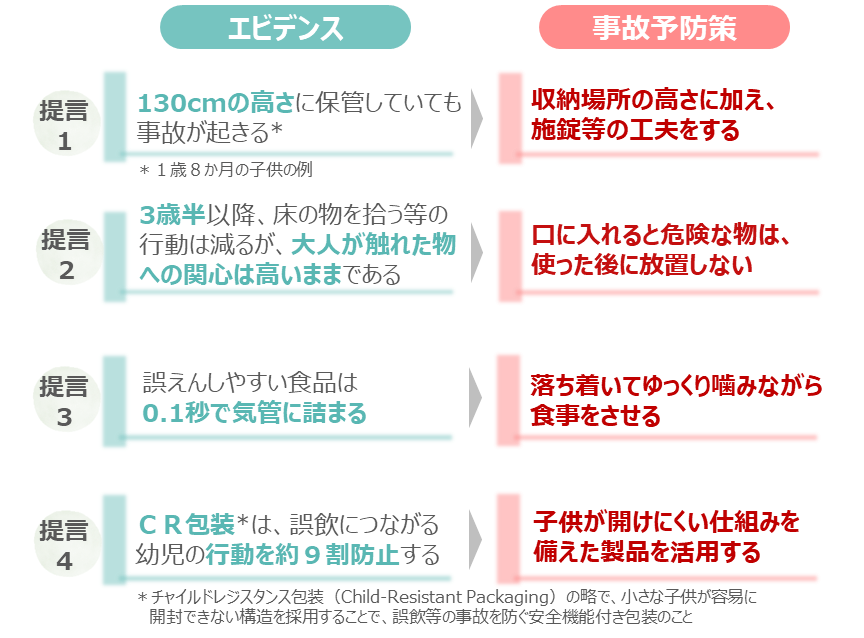 提言書では、乳幼児のいる家庭への訪問調査等により収集したエビデンスとともに、予防策を紹介しています。