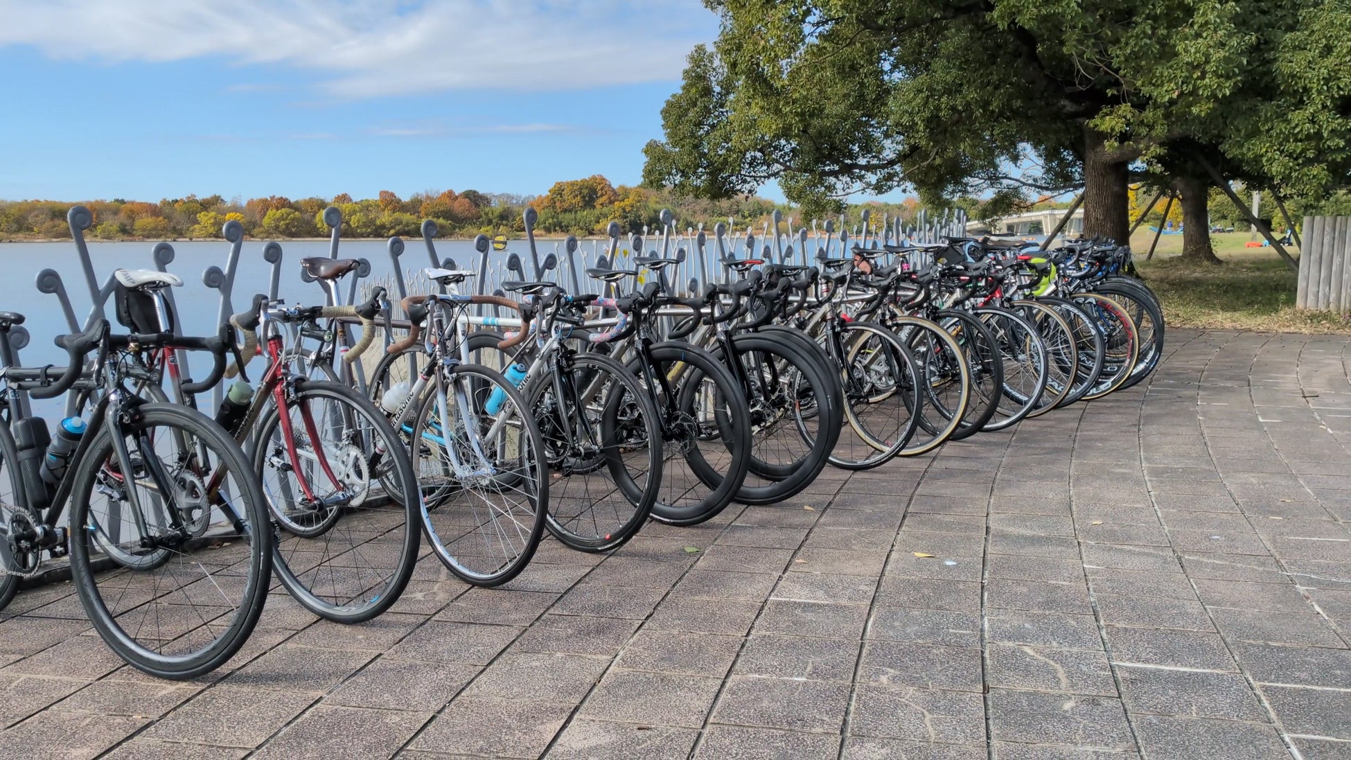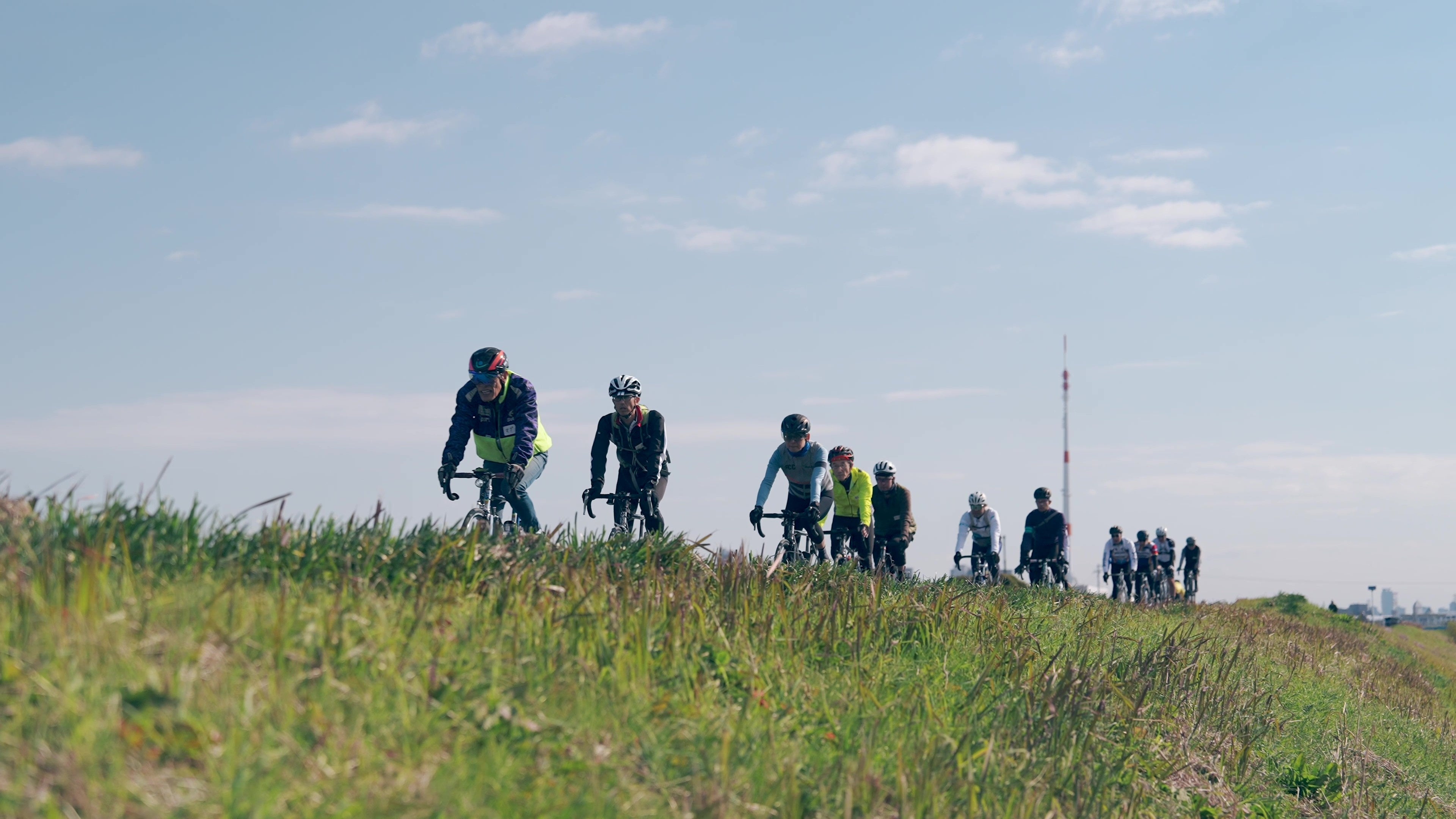 パナソニック サイクルテック社員やゲストを交えての挨拶・準備運動後、荒川沿いを走る約45 kmのライドに出発。途中サイクリスト間では有名なフォトスポットである彩湖の水辺のステージ(通称ニョロニョロ)や、芋ようかんが有名な舟和、サイクリストの憩いの場であるソフトクリーム店 KURUなどへの寄り道を楽しみながら、オーナー様同士や、ゲスト・社員との交流を深め、全員完走することができました。