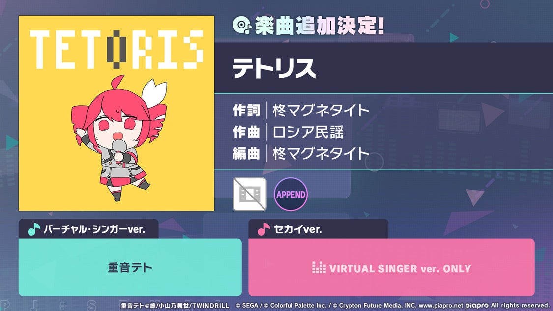 著作権表記:© SEGA / © Colorful Palette Inc. / © Crypton Future Media, INC. www.piapro.net All rights reserved.