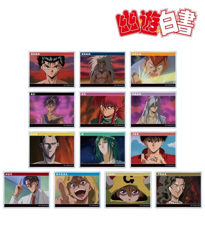 浦飯幽助、桑原和真、飛影、蔵馬、妖狐蔵馬、仙水忍、樹、刃霧要、神谷実、御手洗清志、天沼月人、戸愚呂(兄)の印象的なシーンをアクリルカードに仕上げました。