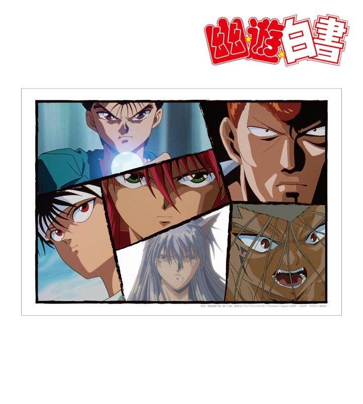 浦飯幽助、桑原和真、飛影、蔵馬、妖狐蔵馬の印象的なシーン、仙水忍、樹、刃霧要、神谷実、御手洗清志、天沼月人、戸愚呂(兄)の印象的なシーンをA3サイズのマット加工されたポスターに仕上げました。