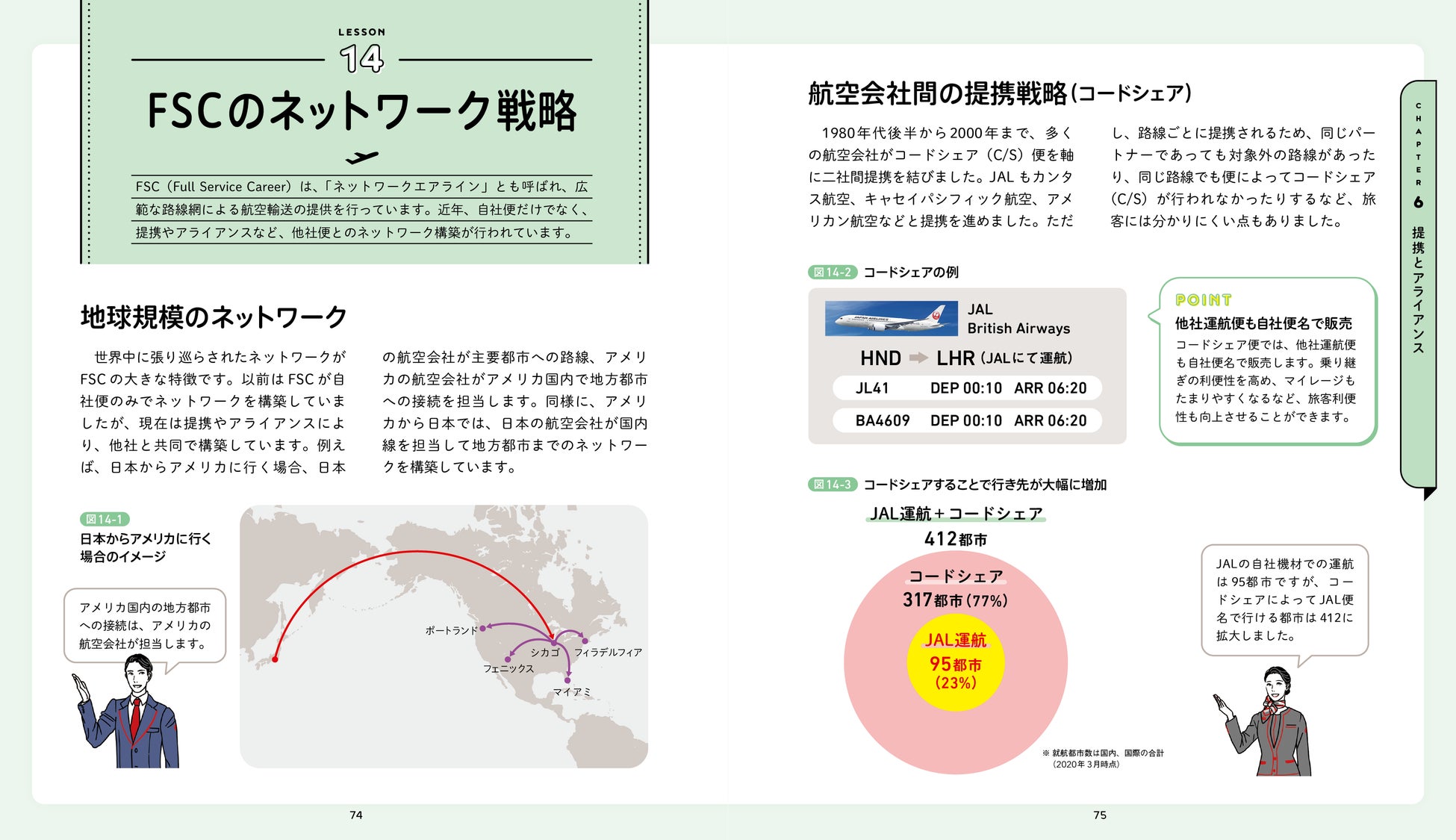 本書は、産学連携の取り組みを通じて次世代の航空人財育成のサポートを行うJALが大学で行った講義の資料をもとにしています。書籍化にあたり、各種データや解説内容を大幅にアップデートしたほか、JALグループで働く社員の体験談を「Voice」コラムとして掲載するなど、ここでしか読めない内容となっています。さらに、各章ごとに理解度を確認できる小テストも用意しました。