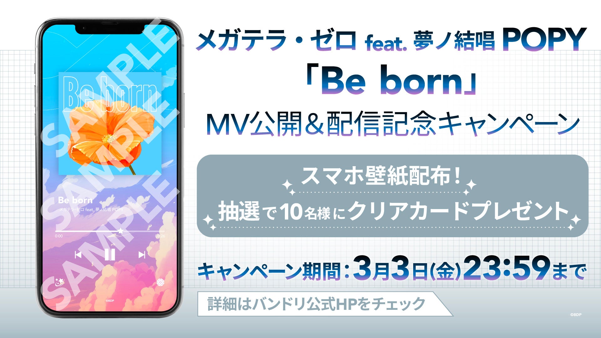 メガテラ・ゼロ feat. 夢ノ結唱 POPYのオリジナル曲「Be born」のMV公開および、各音楽配信サービスでの配信を記念してキャンペーンを開催いたします。