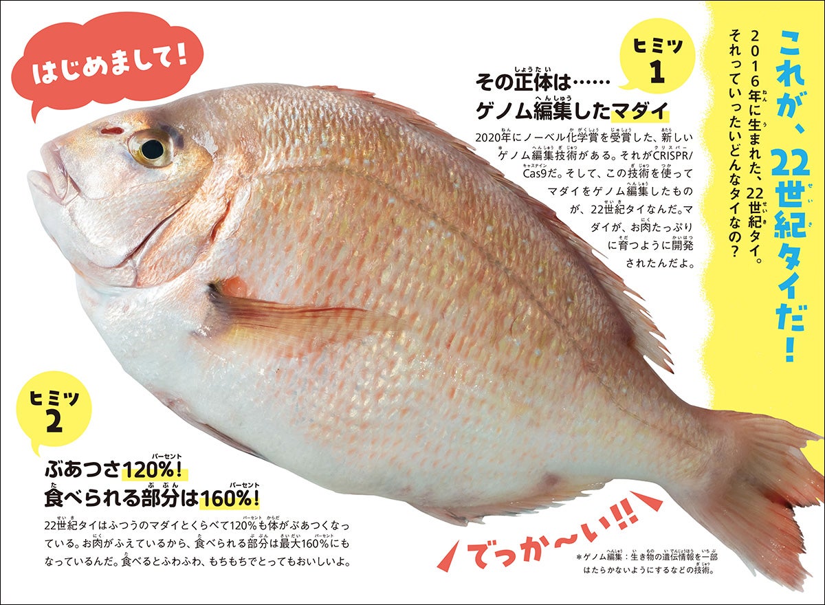 でっかくて、ぶあついマダイ!? 世界初の動物ゲノム編集食品「22世紀タイ」を通して、食と生き物のしくみが学べる児童書ノンフィクションが発刊!