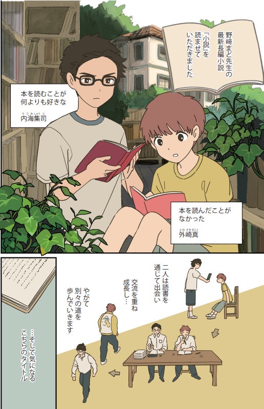 五歳で「走れメロス」を読んで以来、小説だけが内海集司の友達だった。十二歳のとき、司馬遼太郎『竜馬がゆく』を貸したことがきっかけで、同じ世界を愛する初めての仲間・外崎真と出会う。ある日学校裏の「モジャ屋敷」に忍び込んだ2人は、そこで謎の小説家・髭先生に遭遇する。屋敷の蔵書を読み漁る日々が二人の青春となった。小説があればそれでよかった、読むことが至上の幸福だった。しかし大人になるにつれ二人の道は次第に分かれ、「読む」ことに意味を求める現実が内海の前に立ちはだかる。