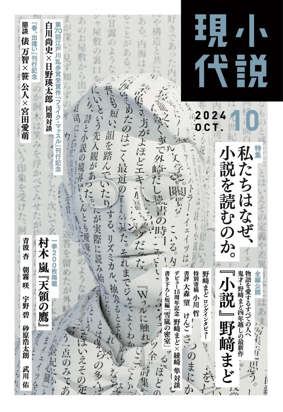 株式会社講談社(本社:東京都文京区)が発行する小説誌「小説現代」10月号(9月21日⦅土⦆発売号)で全編公開されるのは、野﨑まどさんによる4年越しの最新長編小説・その名も『小説』。「小説を読む意味とは?」「その先に何があるのか?」――。そんな疑問に、『小説』はたった一つの答えをもたらします。「特集 私たちはなぜ、小説を読むのか。」と題し、注目の書き手による特別エッセイや生粋の本読みによる書評、そして著者・野﨑まどさんのロングインタビュー&スペシャル対談を含む大特集でお届けします。