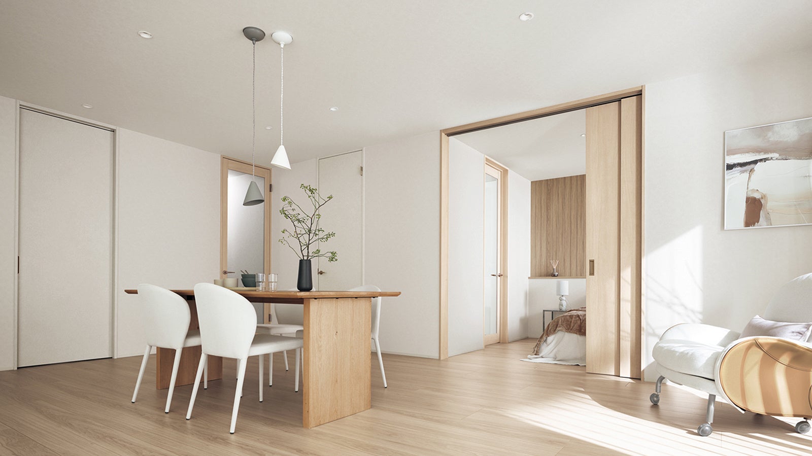 NEWベリティスは「空間を広く、選びやすく。」というコンセプトのもと、住まいづくりに新たなアイデアを提供します。当社は、大阪公立大学 生活科学研究科 生活科学専攻の酒井 英樹教授に助言を受け、快適な暮らしづくりに直結する「広さ」の演出手法として、「明るくする」「視線をつなげる」という工夫を取り入れました。