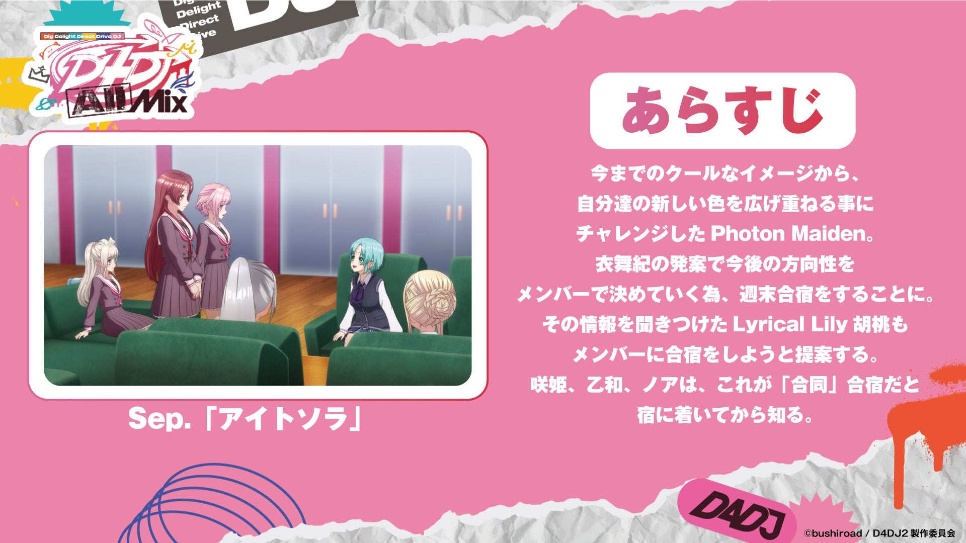 株式会社ブシロード(本社:東京都中野区、代表取締役社長:木谷高明)は、3月3日(金)23時よりTOKYO MX、BS日テレほかにて放送のTVアニメ「D4DJ All Mix」第8話あらすじと先行場面カットの公開をしたことをご案内いたします。