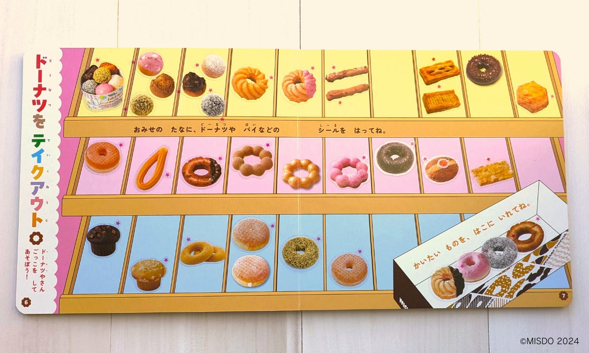 【ミスタードーナツ公式】豊富なメニューであそべるシールブックが9月27日(金)に発売! ドーナツやさんごっこもできるリアルな写真シールがたっぷり63枚入り