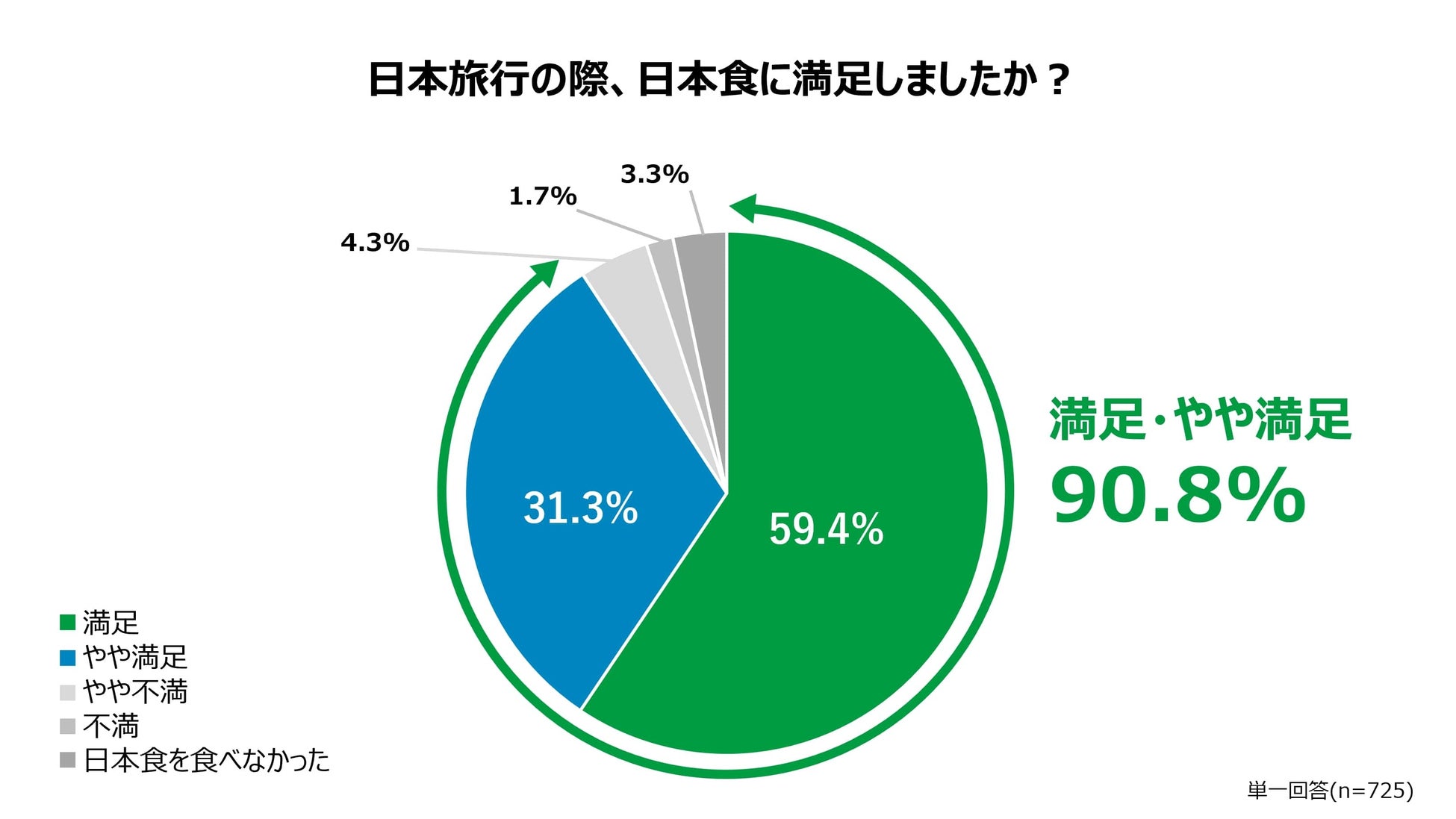 「地球の歩き方GOOD LUCK TRIP」が、訪日中に外国人旅行者が感じる日本食への満足度や、日本食に飽きてしまう方の割合などを725人に調査。