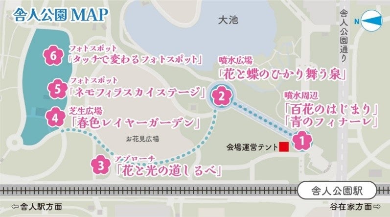 4回目の実施となる2026年は、舎人公園の代名詞の1つ、ネモフィラの「青」にスポットを当て、多彩な春の花々から青へと移ろう「色のストーリー」を、花とイルミネーション、音の融合で表現します。