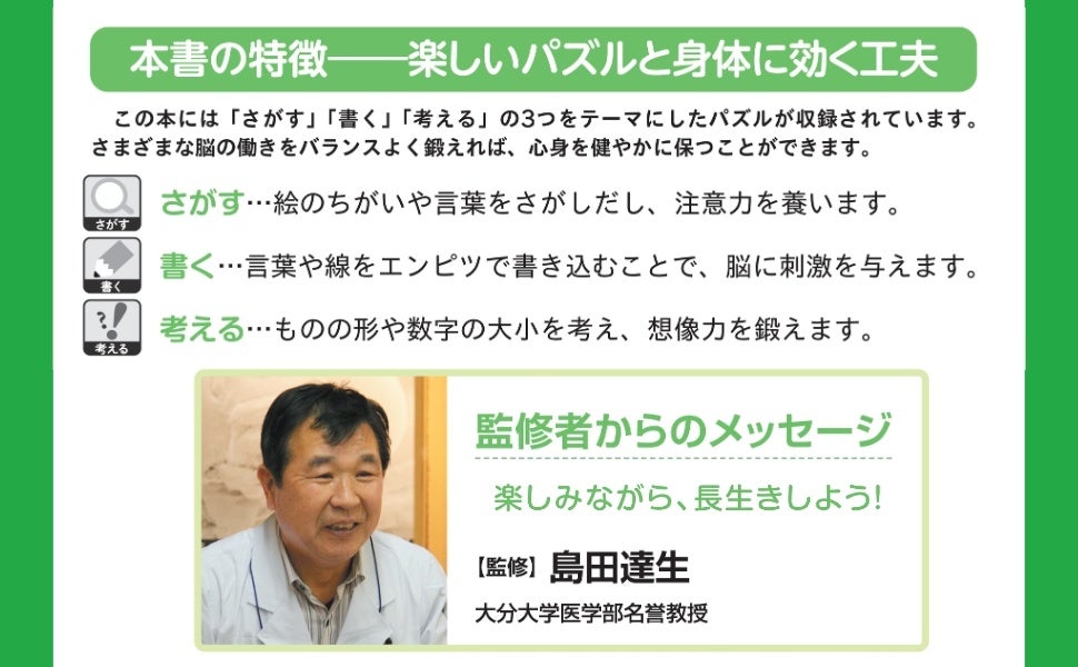 大分大学名誉教授・島田達生先生が提案!【楽しく&簡単に脳の体操ができるパズル】のベストセレクション版です。