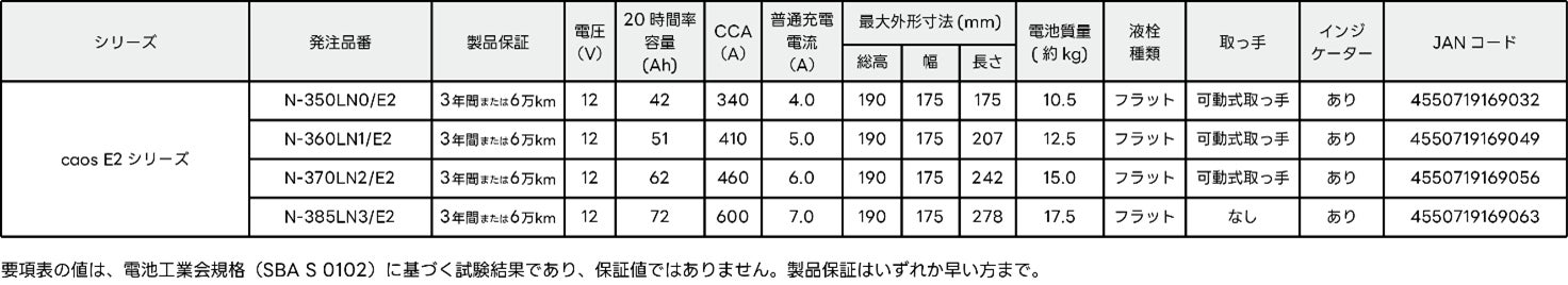 昨今、日本車への採用が進んでいるEN規格バッテリーを、「caos E2シリーズ」にリニューアルします。