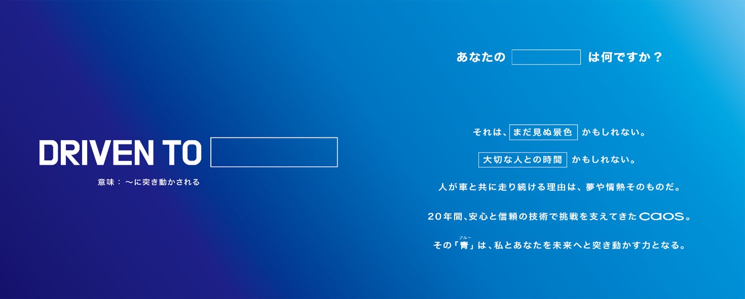これは、caosが「その原動力を支える存在であり続ける」というメッセージをシンプルに伝えるための新たなキャッチコピーです。