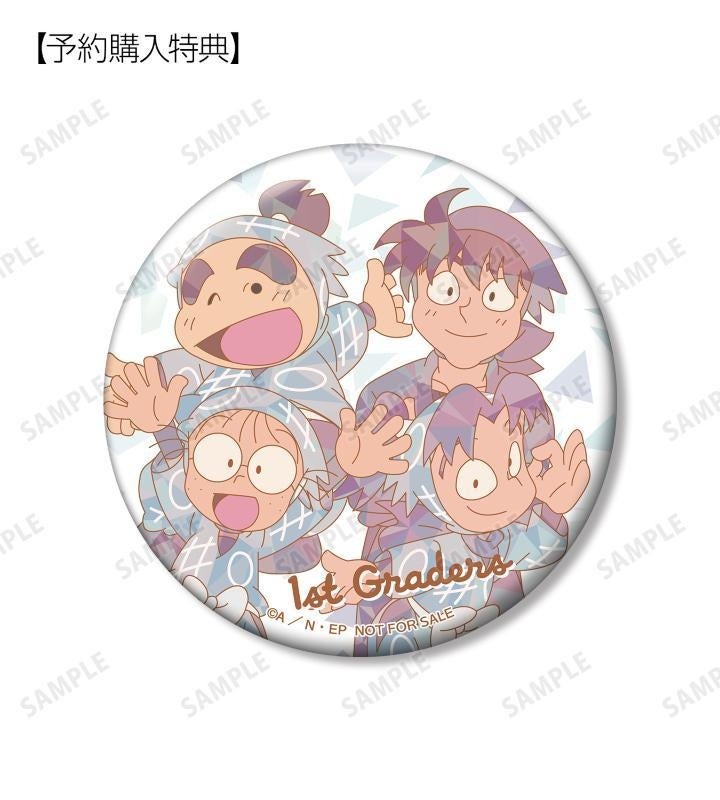 当商品を1BOX、または単品にて1BOX相当数ご注文ごとに、予約購入特典として「四年生集合 プリズムパターン 76mm缶バッジ AMNIBUS限定特典」を付属いたします。