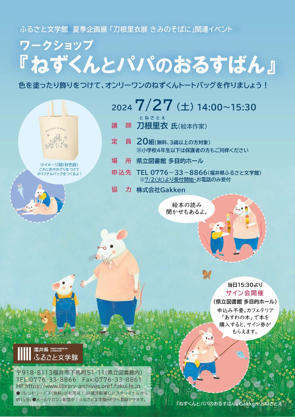株式会社 学研ホールディングス(東京・品川/代表取締役社長:宮原博昭)のグループ会社、株式会社 Gakken(東京・品川/代表取締役社長:五郎丸徹)は、福井県ふるさと文学館にて開催中の『刀根里衣展「きみのそばに」』に協力し、2024年7月27日(土)に、ワークショップイベントとサイン会を開催いたしました。